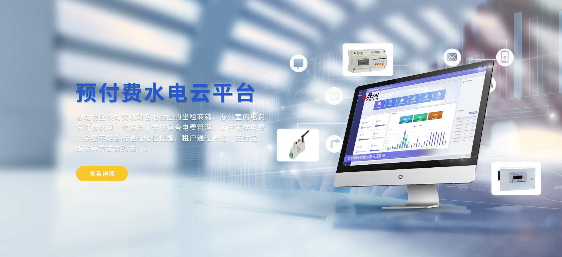 安科瑞提供的解決方案包括Acrel-EIoT能源物聯網云平臺變電所運維云平臺、安全用電管理云平臺、環保用電監管云平臺、智慧消防云平臺、能源管理云平臺、工業企業能源管控平臺、遠程預付費云平臺、餐飲油煙監管云平臺電動汽車/電瓶車充電樁收費管理云平臺、電力監控/無線測溫系統、電能質量治理系統、電氣火災監控系統、消防設備電源監控系統防火門監控系統、應急照明和疏散指示系統、智能照明控制系統、醫用隔離電源絕緣監測系統等,幫助用戶實現能源智能化、可視化、精細化管理,提高用能效率和用能安全,為企業節能降耗和實現能源數字化建設提供數據服務。